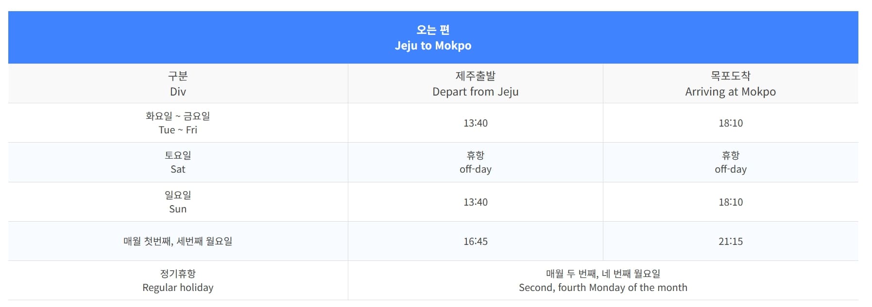 아래에서 운항스케줄을 확인하실 수 있습니다.